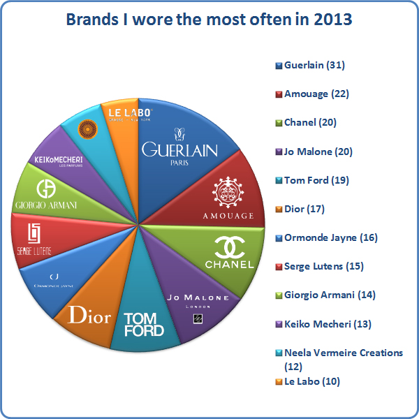 Perfume-wise 2013 also wasn’t a bad year (numbers in parentheses are from 2012, for comparison).