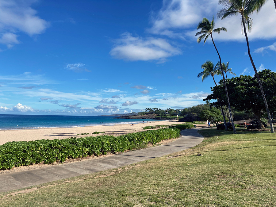 And Hapuna Beach, the largest of the island’s white sand beaches, to where we went right away for the first swim, was still as wonderful as we remembered it. That evening the ocean was probably the warmest and calmest of all days we swam.
